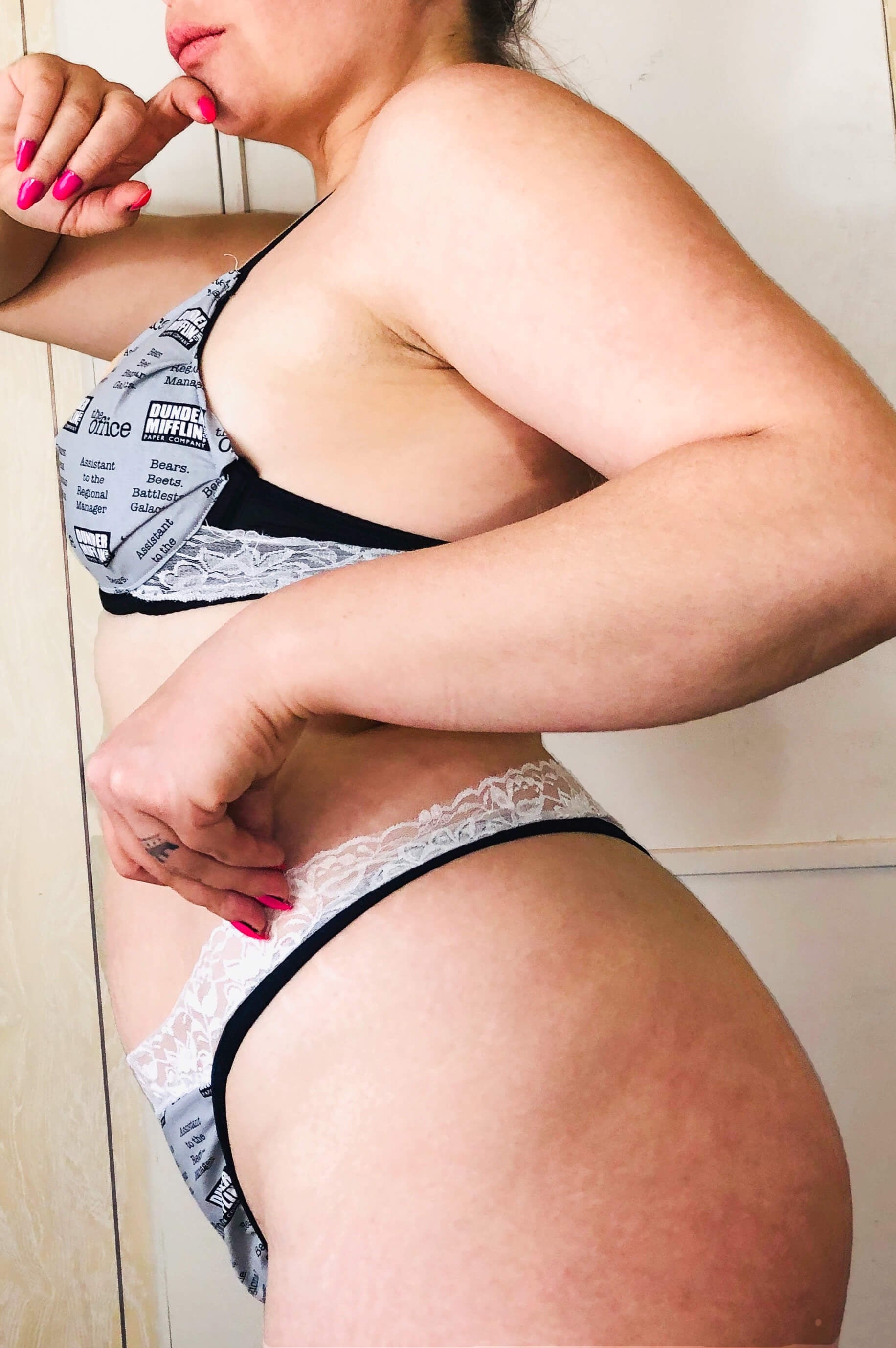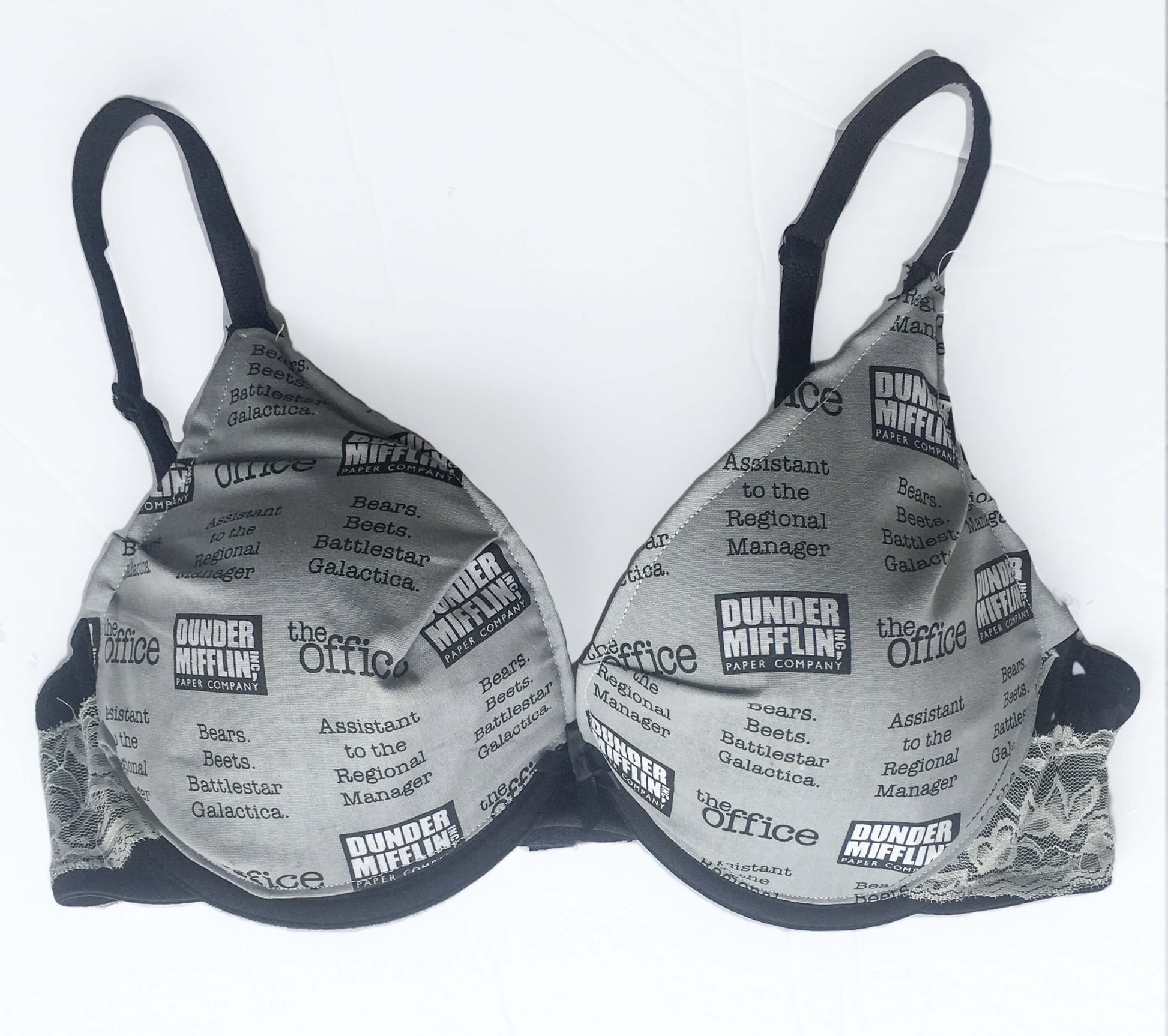 Our Dunder Mifflin Lightly Lined Demi Cup Bra T-shirt Bra is the ultimate everyday essential for every Office lover! This low-cut and unique, demi cup T-shirt bra is comfortable and flattering. The cups are lightly lined, so it looks great under attire, but so sexy and fun without! The fun, witty fabric includes quotes from Dwight Schrute.