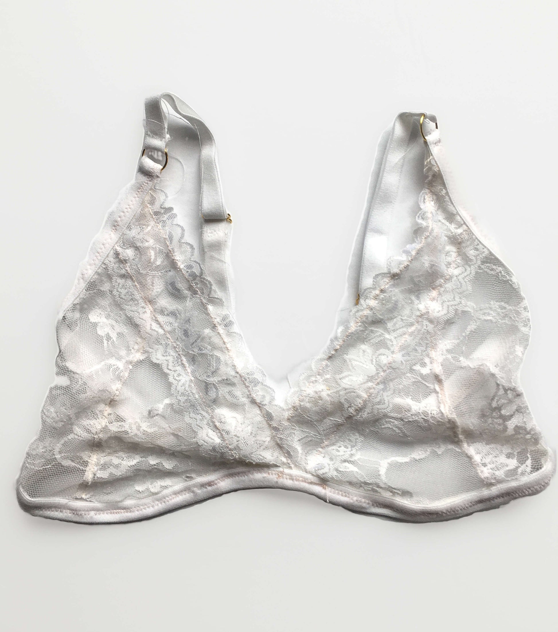 Our Giselle Floral Lace Triangle Bralette has a back hook closure and gold tone hardware. The fabric is a stretchy, soft house favorite!