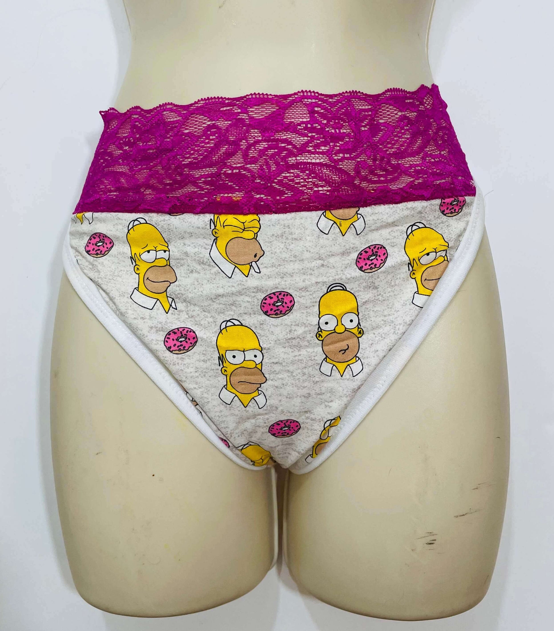 Our Homer and Pink Sprinkle Doughnuts Gstring Thong is sure to become an immediate and lasting favorite! Featuring Homie himself, making several of his classic confused and perplexed facial expressions. Medium rise, minimal coverage.