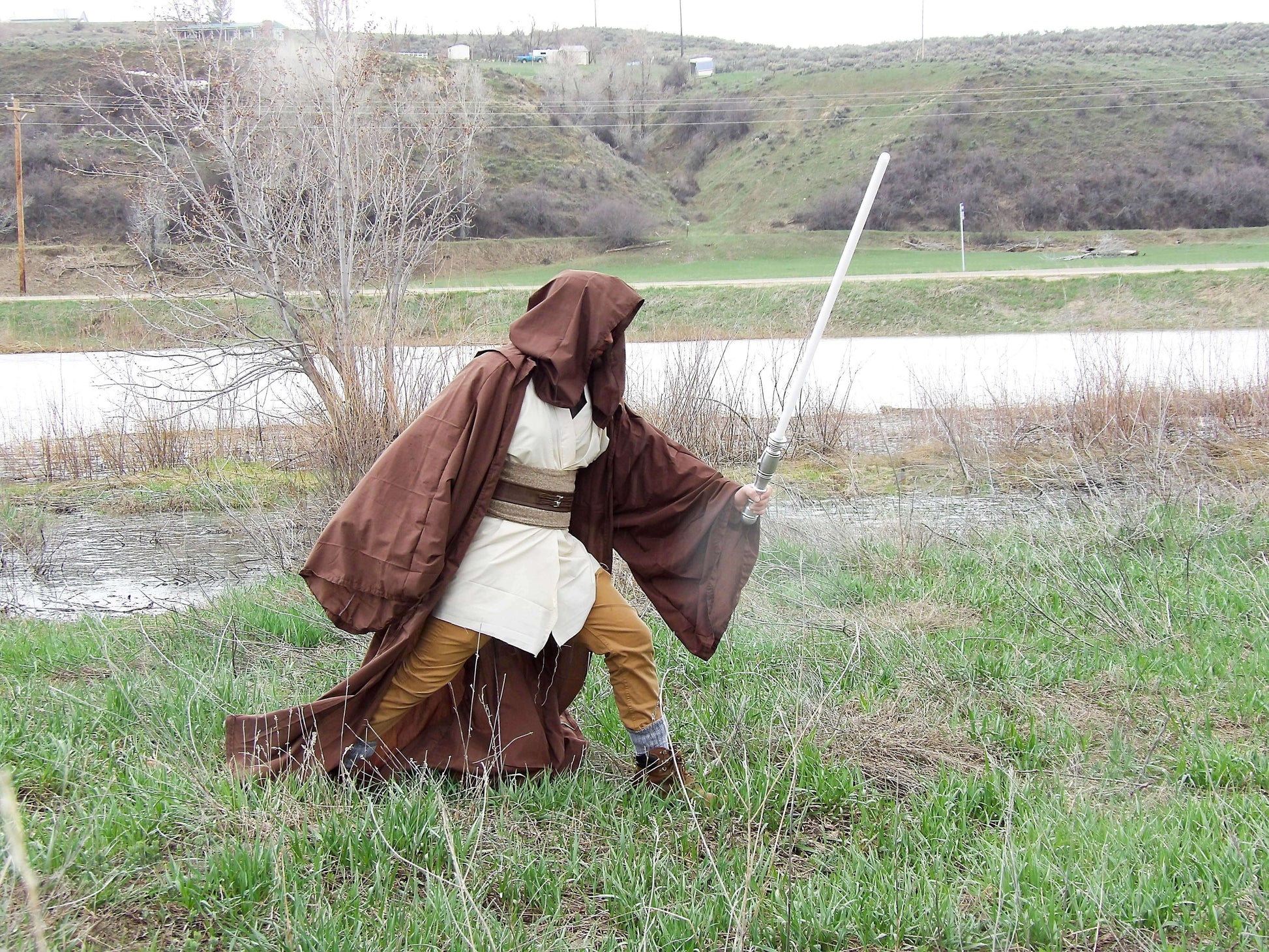 Jedi Cosplay with Full Brown Robe and Under Robes in Light Biege