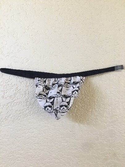 Stormtroopers on parade and at alert adorn this sexy gstring triangle cut mens thong!