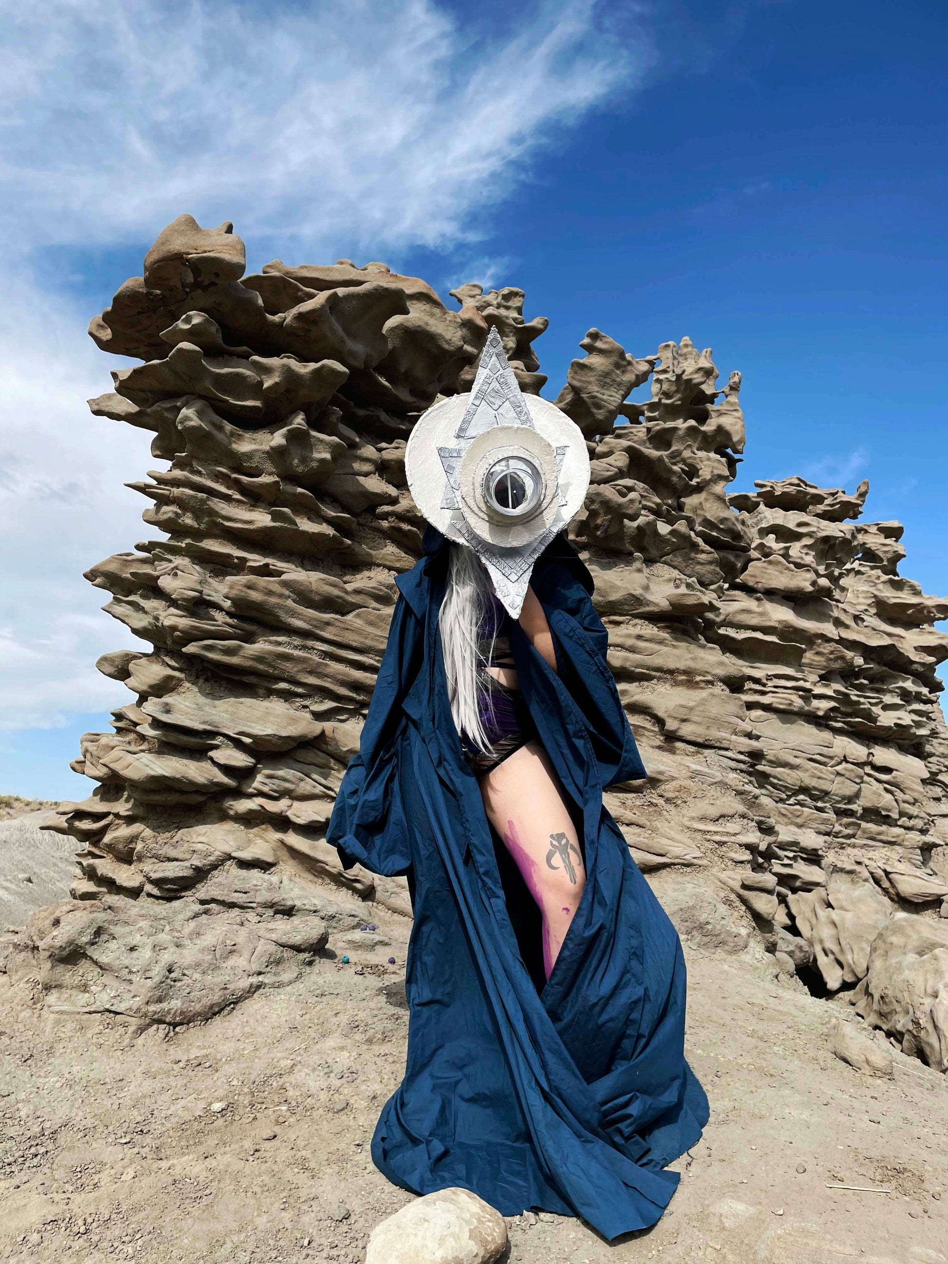 Navy Blue Occult Robe with Giant Hood, Oversized Sleeves