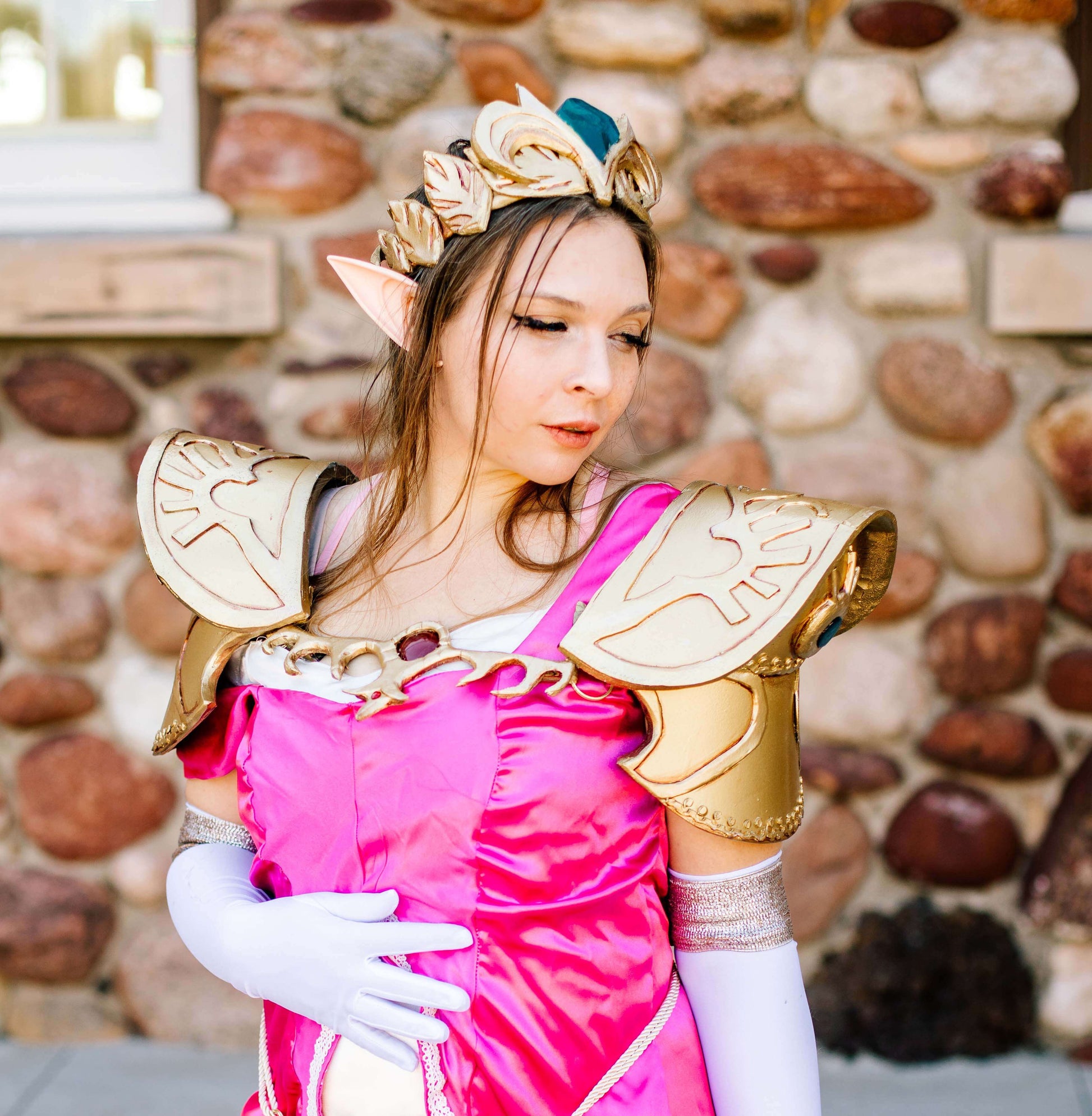 Finish your video game warrior princess Cosplay with this made to order Princess Zelda Crown with resin gem! Our props are created with my original patterns, using the best quality materials. The gold paint is non cracking and the crown is moderately flexible with the exception of the gem. Resin gems cast by me, using methodologies specific for this gem type. With a perfectly striking gem inlay, a real scale gem, 8 leaves with detail, and a powerful back embellishment, this crown is the perfect addition to any princess but especially a Princess Zelda Cosplay. Please be prepared to provide your head circumference (exactly where the crown will go) at time of ordering, this crown will be made to your measurements precisely.