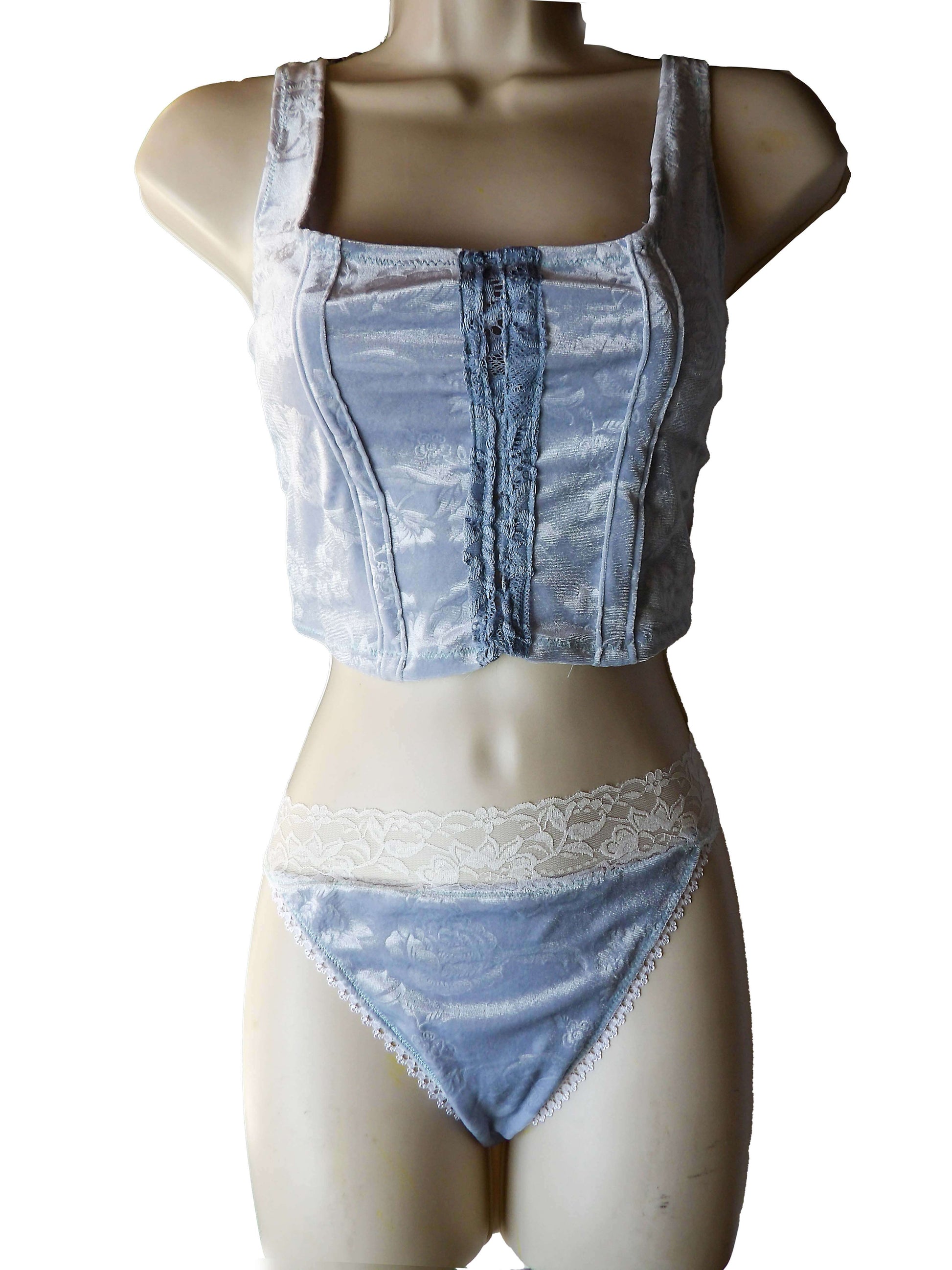 Our Velvet Blues Essential Thong is an adorable and sexy comfort wear essential, featuring gorgeous embossed floral pattern on a soft and stretchy hand curated velvet knit fabric. This floral white lace trimmed undie is insanely comfortable, super fun, and sexy!
