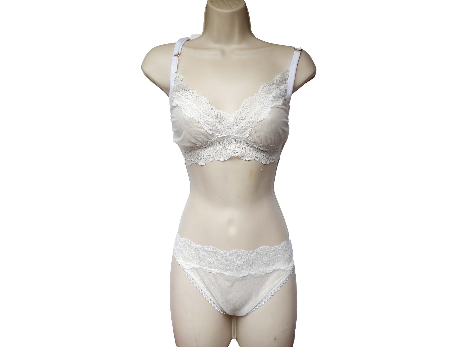 Our Sheer Dot Mesh Essentials Bralette is a soft and sexy comfort wear essential, featuring sweet, sheer dot mesh with geometric lace trim, and soft adjustable straps.