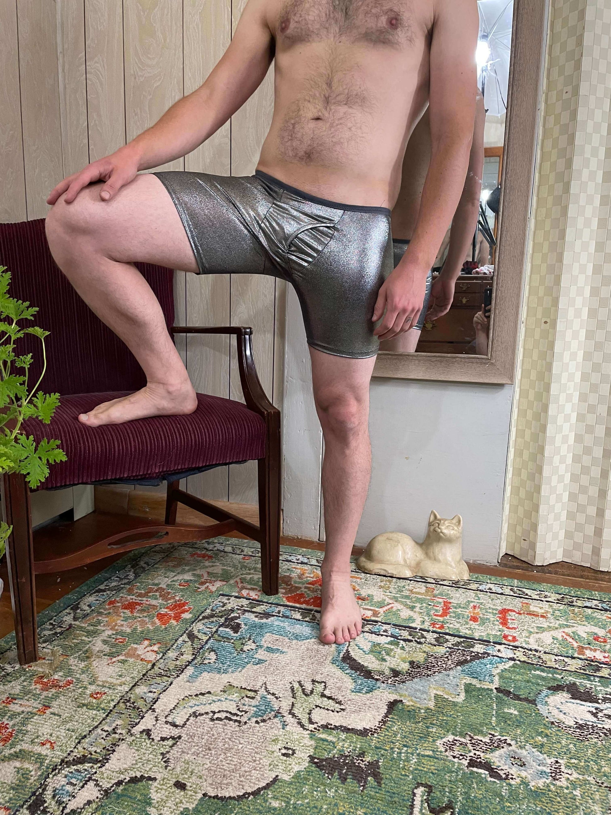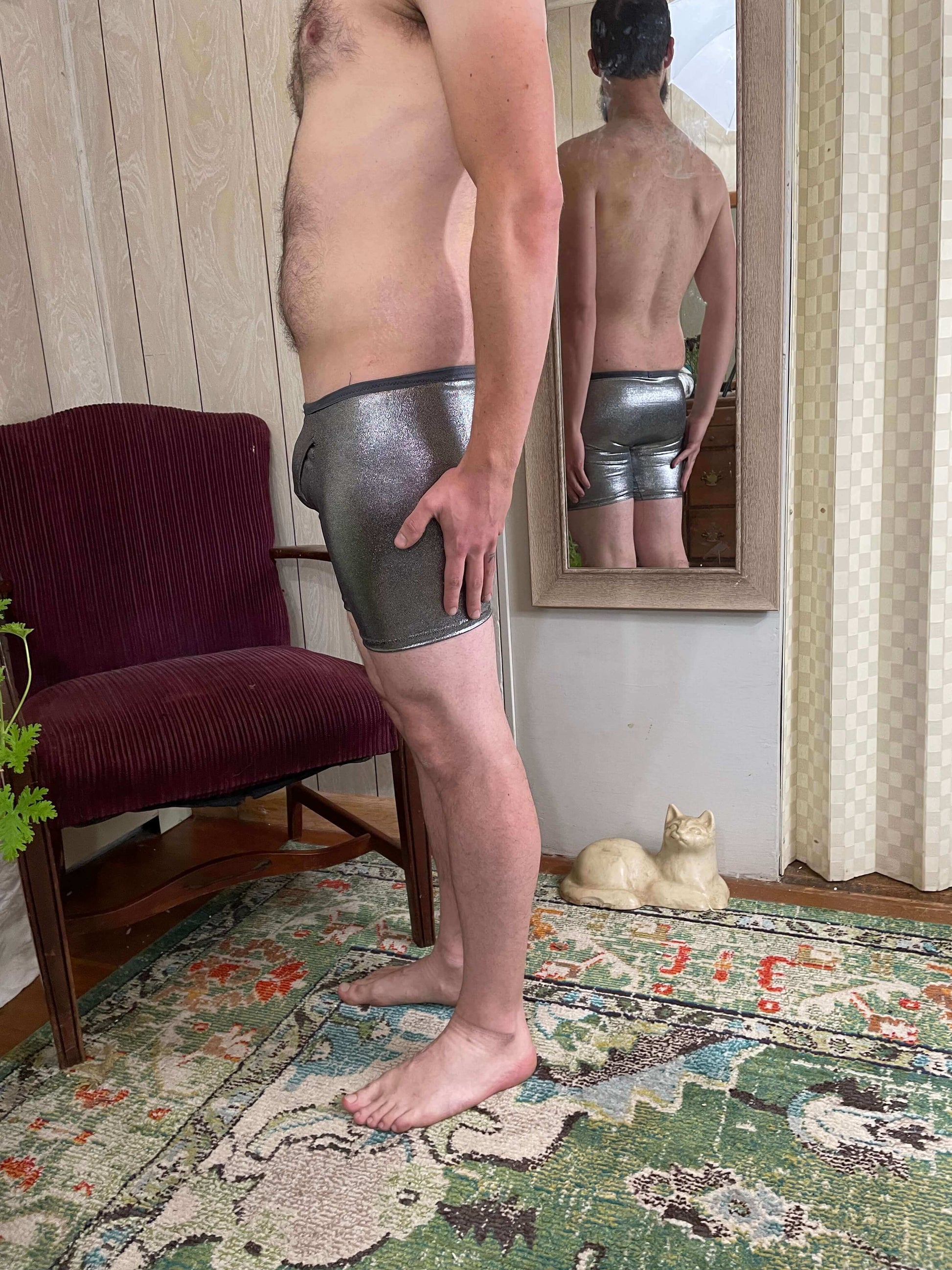 Our Super Shiny Silver Boxer Briefs Is made of super soft, super stretchy, shiny, and sexy fabric, with a contoured front pouch for ultimate all-day comfort and support.